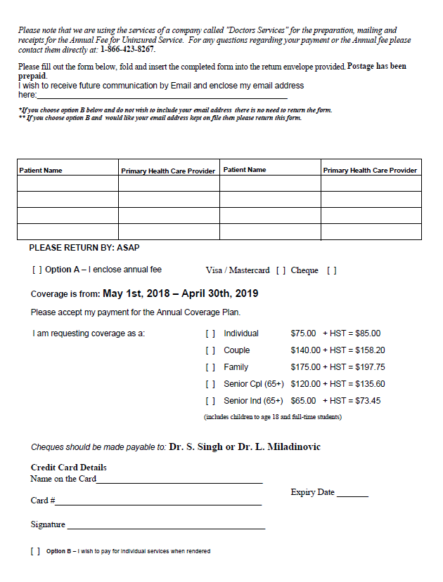 Following are details on this years current Annual Fee / Block Fee program.